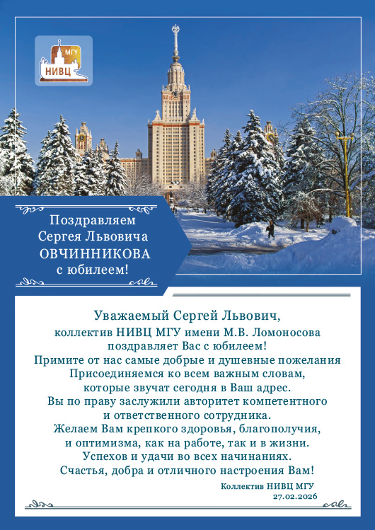 27 февраля 2026 года исполняется 70 лет сотруднику лаборатории разработки систем автоматизации обработки изображений Научно-исследовательского вычислительного центра МГУ имени М.В. Ломоносова Сергею Львовичу Овчинникову.