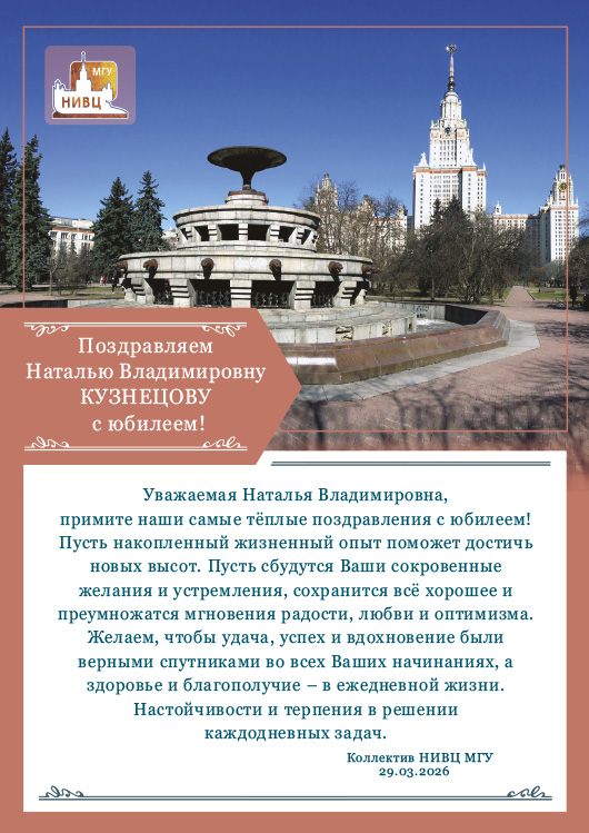 29 марта 2026 года исполняется 50 лет сотруднику хозяйственного отдела Научно-исследовательского вычислительного центра МГУ имени М.В. Ломоносова Наталье Владимировне Кузнецовой.