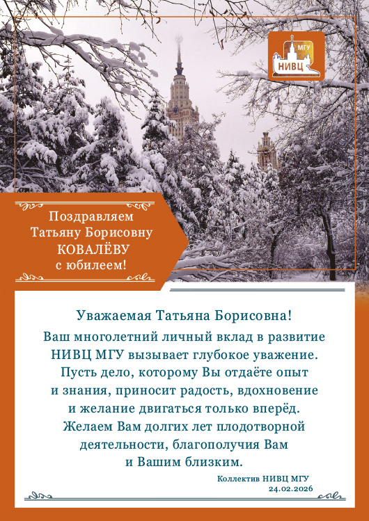 24 февраля 2026 года исполняется 75 лет сотруднику лаборатории автоматизации программных вычислительных комплексов Научно-исследовательского вычислительного центра МГУ имени М.В. Ломоносова Татьяне Борисовне Ковалёвой.